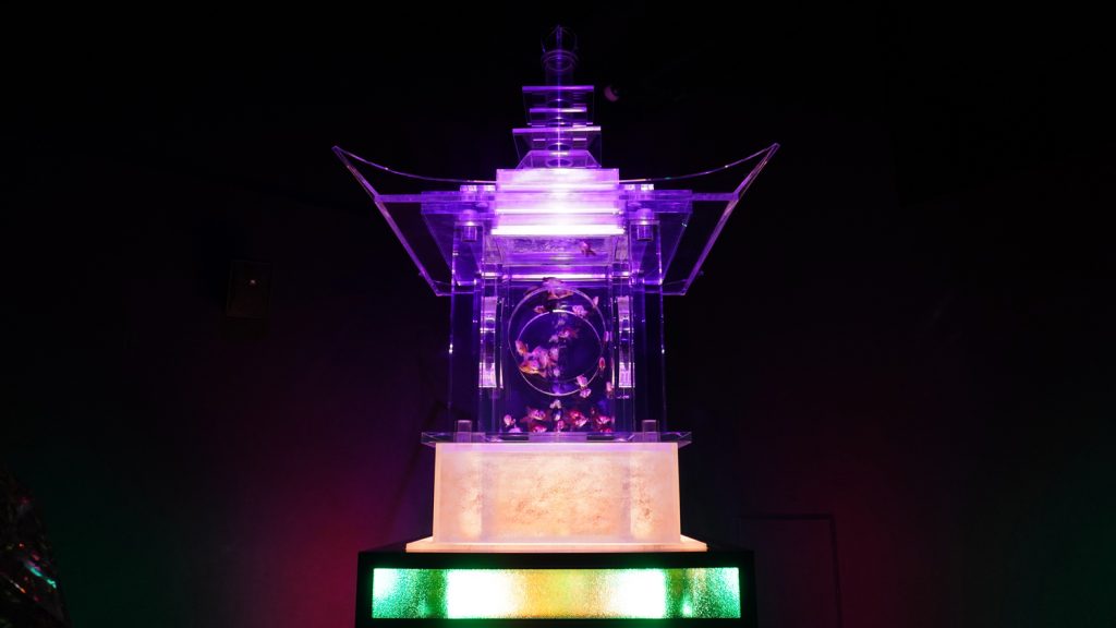 そしていくつもの立方体の水槽に囲まれて、仏堂のような水槽が!